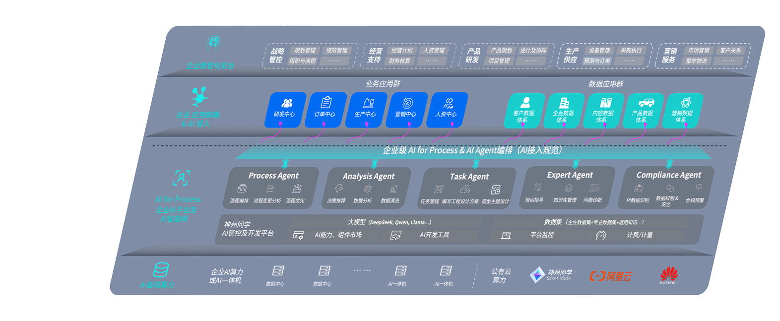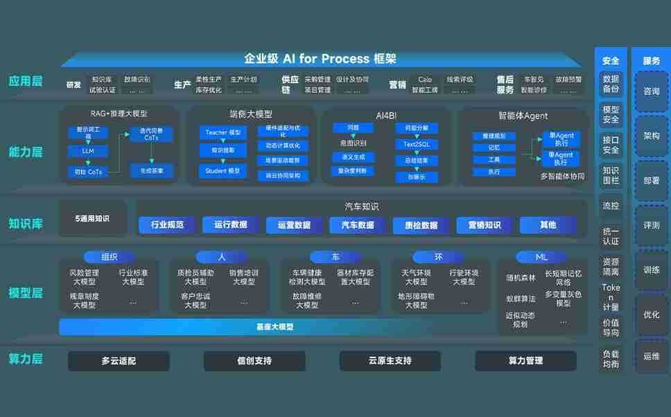 端到端的一站式AI工作空间深度融合了从企业战略规划到日常经营的全流程业务板块,,定向解决车企内部领域多、、部门多、、、、链条长、、、场景碎片化等难题,,,,支持车企快速构建以AI为核心的生产力写作体系,,实现任务执行与AI能力的无缝集成与交互