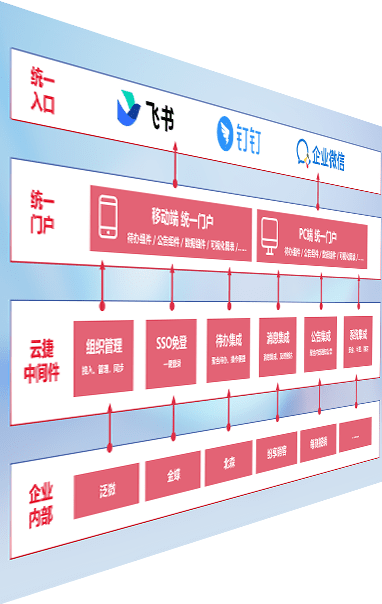 对协作平台提供支持服务,,,支持企业应用与协作平台对接,,包含组织同步、、、、消息集成、、、、待办集成等。。支持目前主流的协作平台:钉钉、、、企微和飞书。。。。